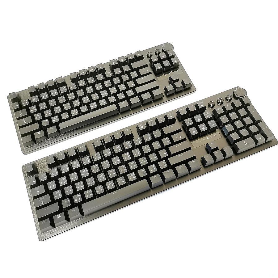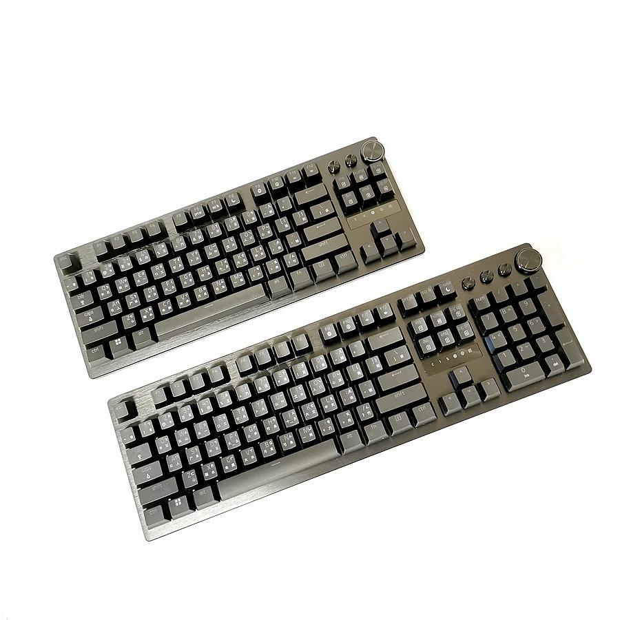 ▼ 實際拿出 Razer Huntsman V3 Pro、Razer Huntsman V3 Pro TKL 兩款鍵盤本體比較大小。