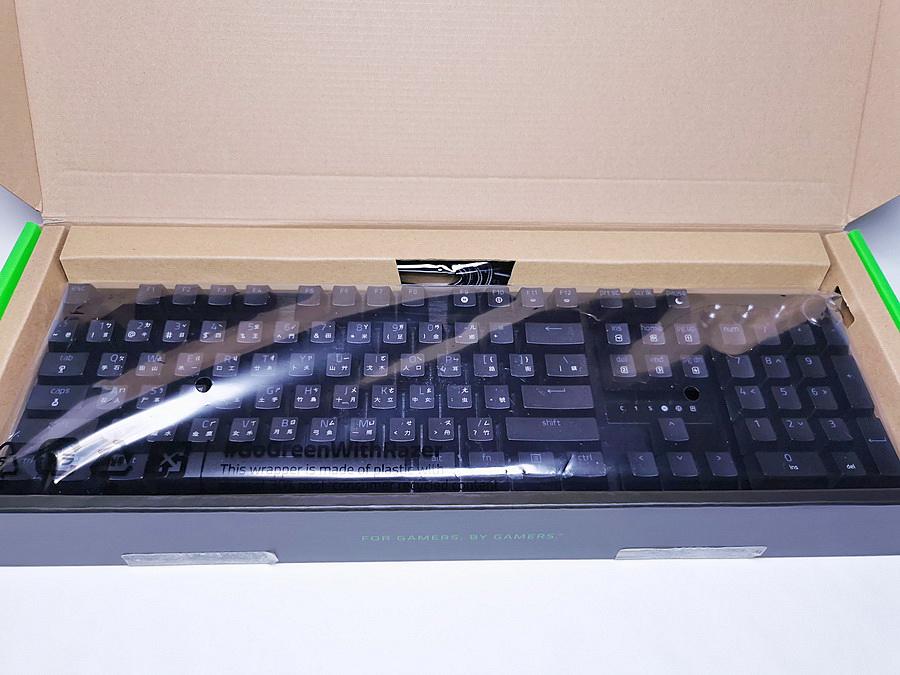 ▼ 掀開外盒上蓋,可以看到鍵盤本體有用塑料袋包覆保護著。