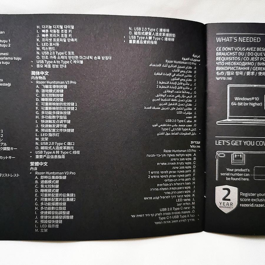 ▼ 外盒背面 標列出 Razer Huntsman V3 Pro 諸多特色,最重要的當然是擁有 兩年保固。