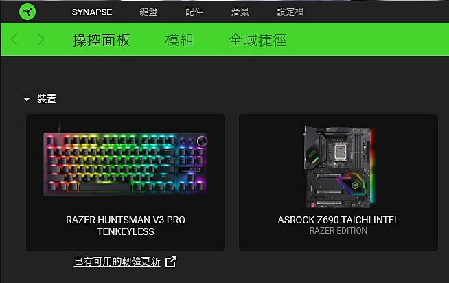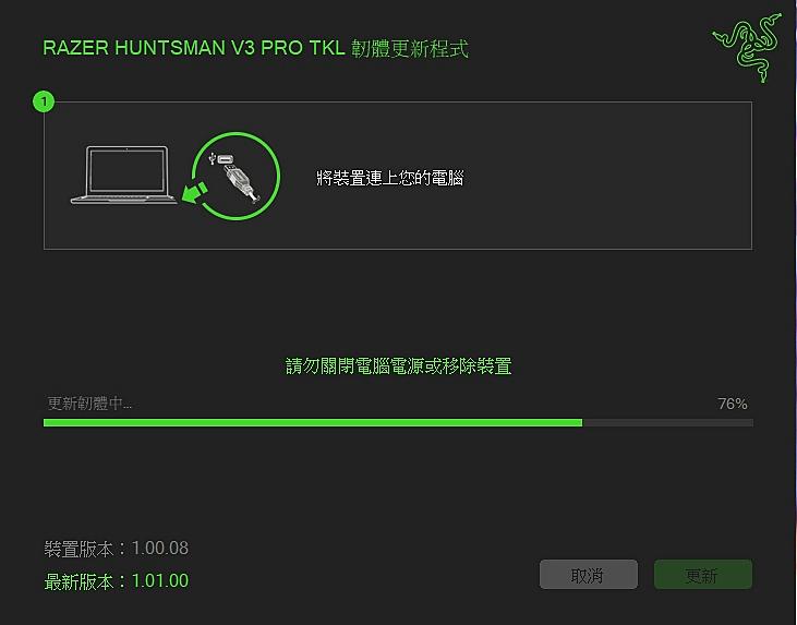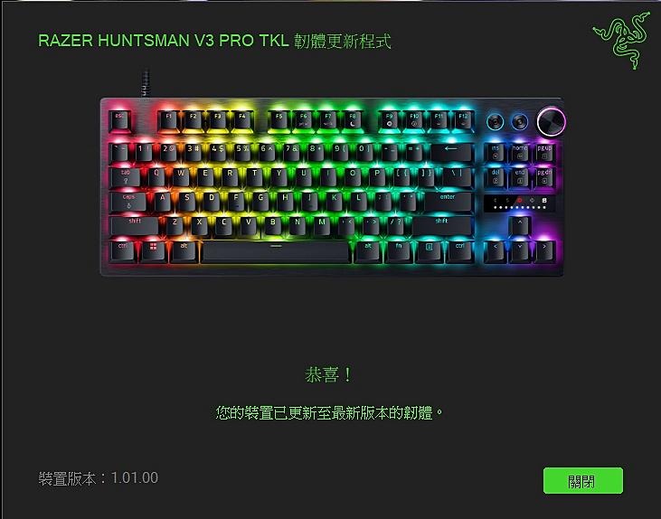 ▼ 另外在安裝 Razer Huntsman V3 Pro TKL 時,跑出有韌體需要更新,當然也順手幫忙更新了。