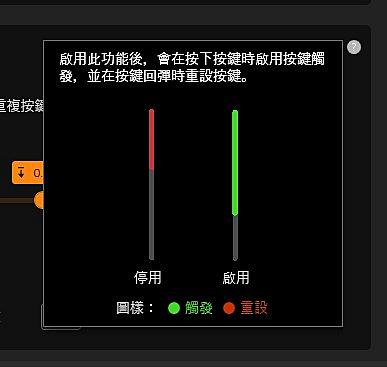 ▼ 再往下還有個 快速觸發 可以開啟,可以設定 快速觸發 鍵程,旁邊的說明也圖示開啟後的不同。
