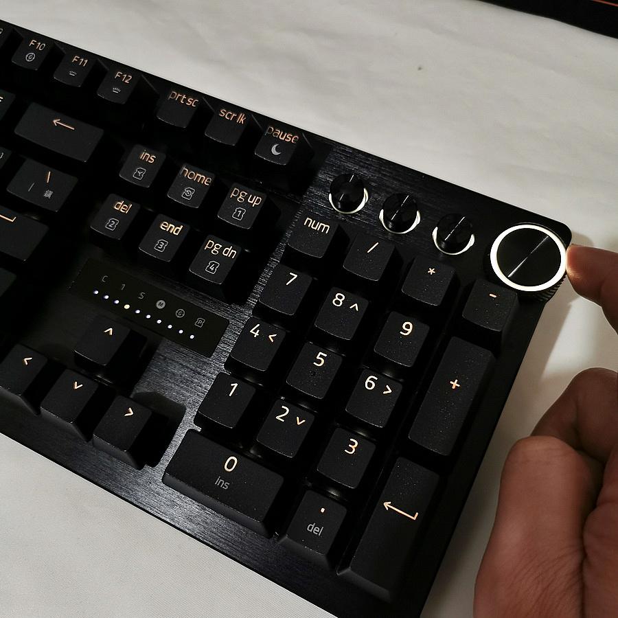 ▼ 結果美女最後是比較喜歡 Razer Huntsman V3 Pro TKL,因為兩隻手不用移來移去,要使用數位旋鈕也比較方便。