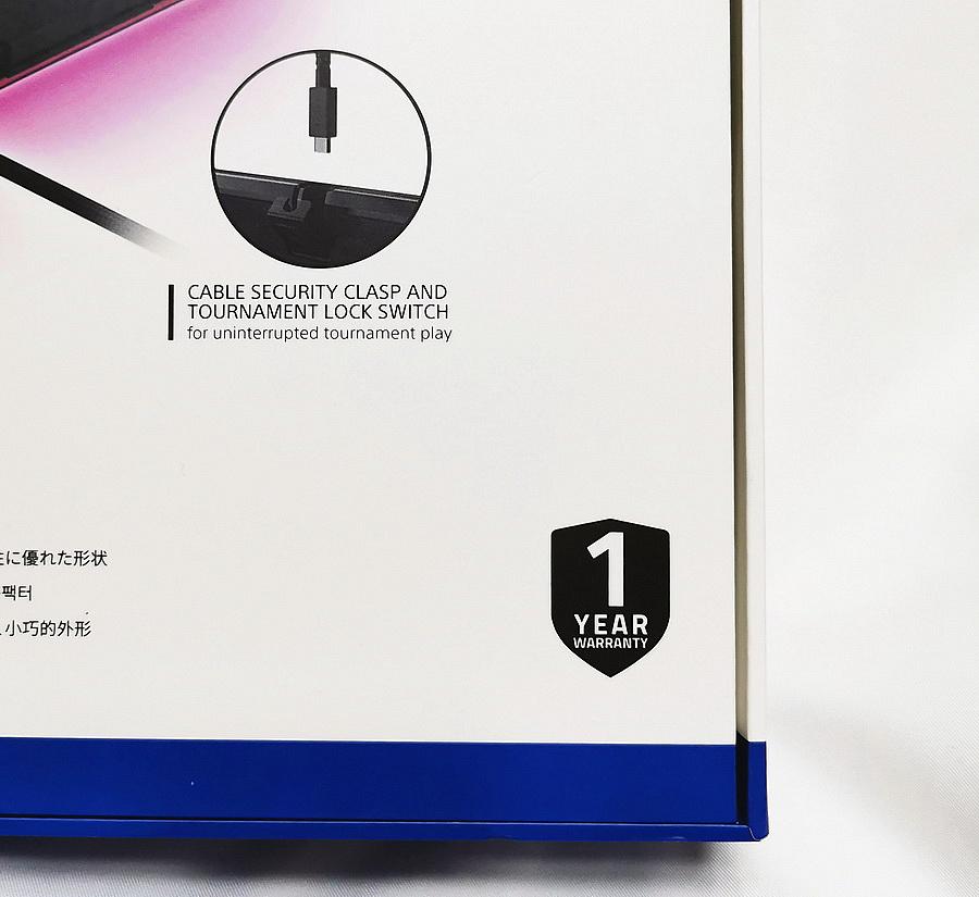 ▼ 盒裝正面 很意外的不是傳統的 雷蛇 黑綠配色,應該算是 PS5 配色,會不會 雷蛇的格鬥系列 以後都會是這種配色?