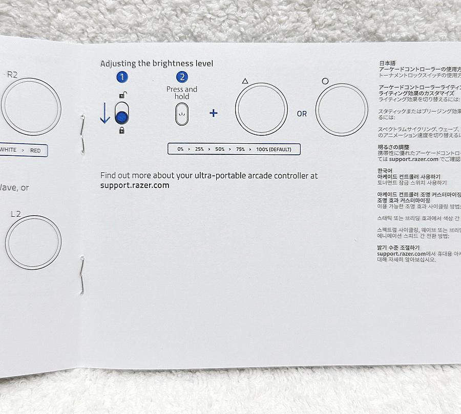 ▼ 多國語言的說明書,圖解 Razer Kitsune 各部位。