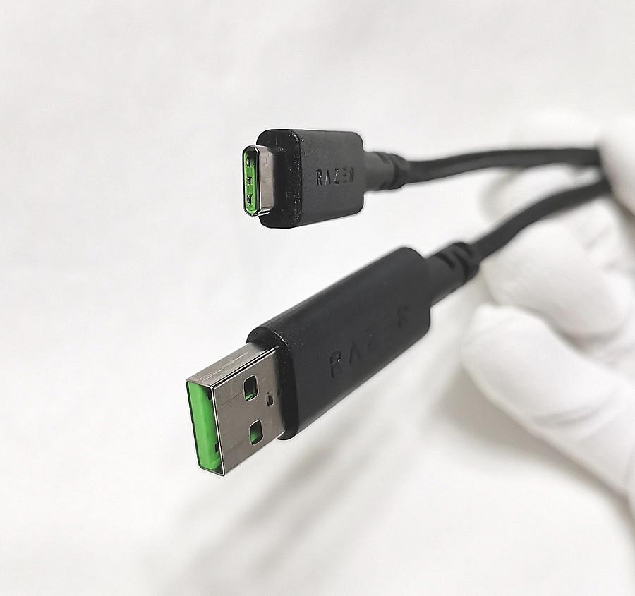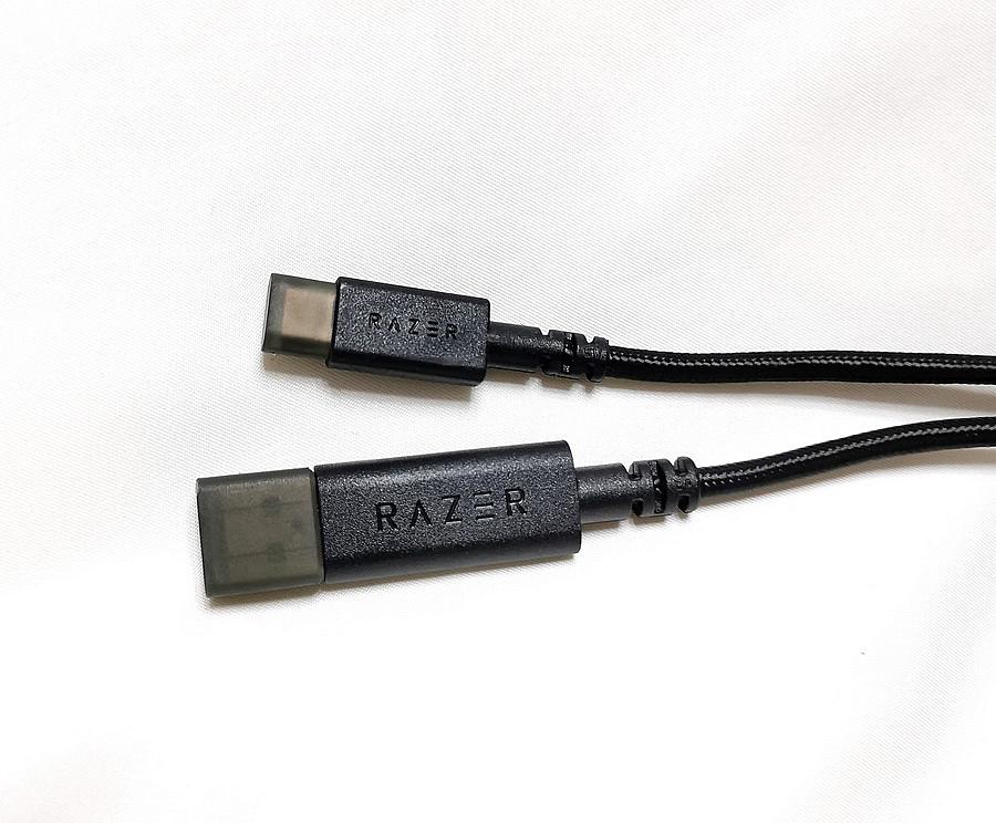 ▼ 雷蛇經典配色的 USB Type C 轉 USB Type A 連接線,兩邊接頭都有保護蓋及RAZER字樣。