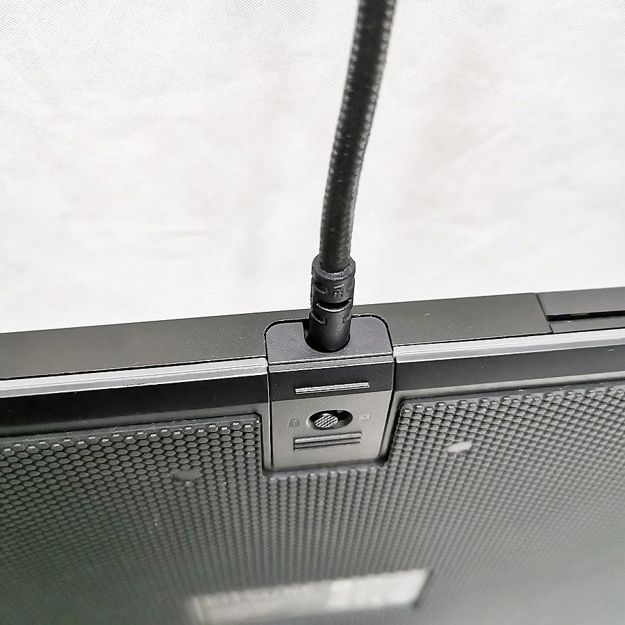 ▼ 纜線固定扣 向右解鎖後可以向上推開,向內深看就可以看到 Type-C 接線孔。