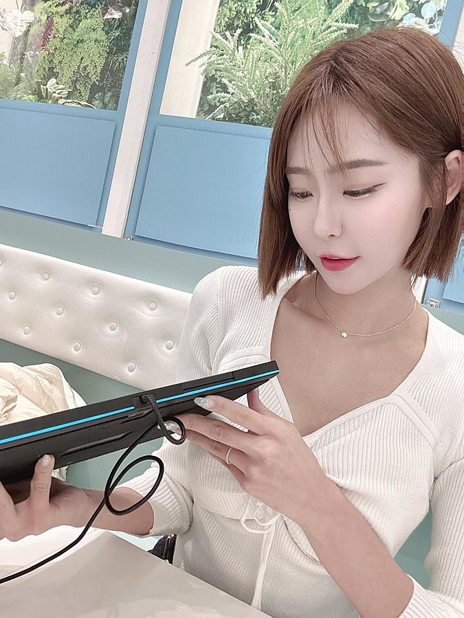 ▼ 纖薄的外型 還有 RGB燈效,讓美女都覺得驚奇,因為她完全不知道這是幹嘛用的?