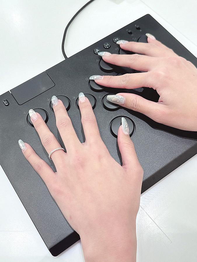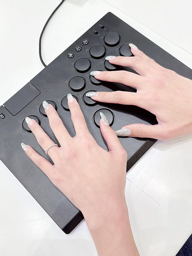 ▼ 先教她手指的擺放方式,就算有做美甲的美女,操作起來也不會有問題。(看到美甲才瞭解 電競鎖定開關 的重要)