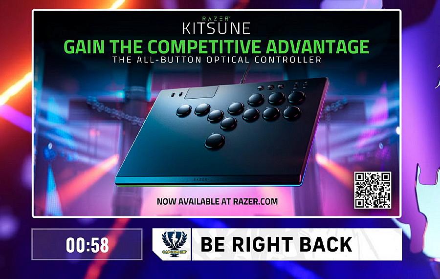這次的 世界大賽 使用 大搖跟HitBox 的選手,大約是 一半一半(手把不計),廣告中也不時穿插 Razer Kitsune 產品照。