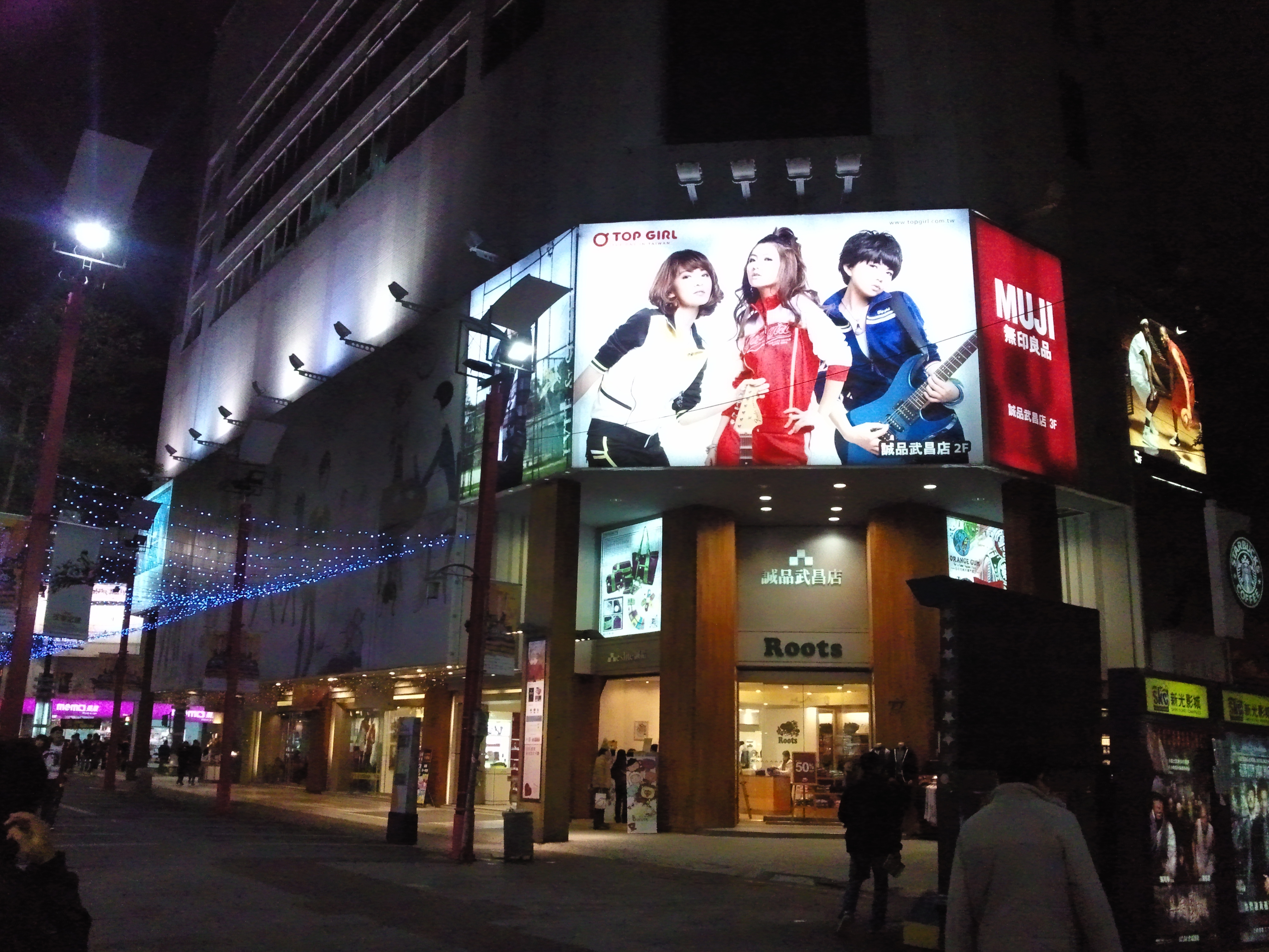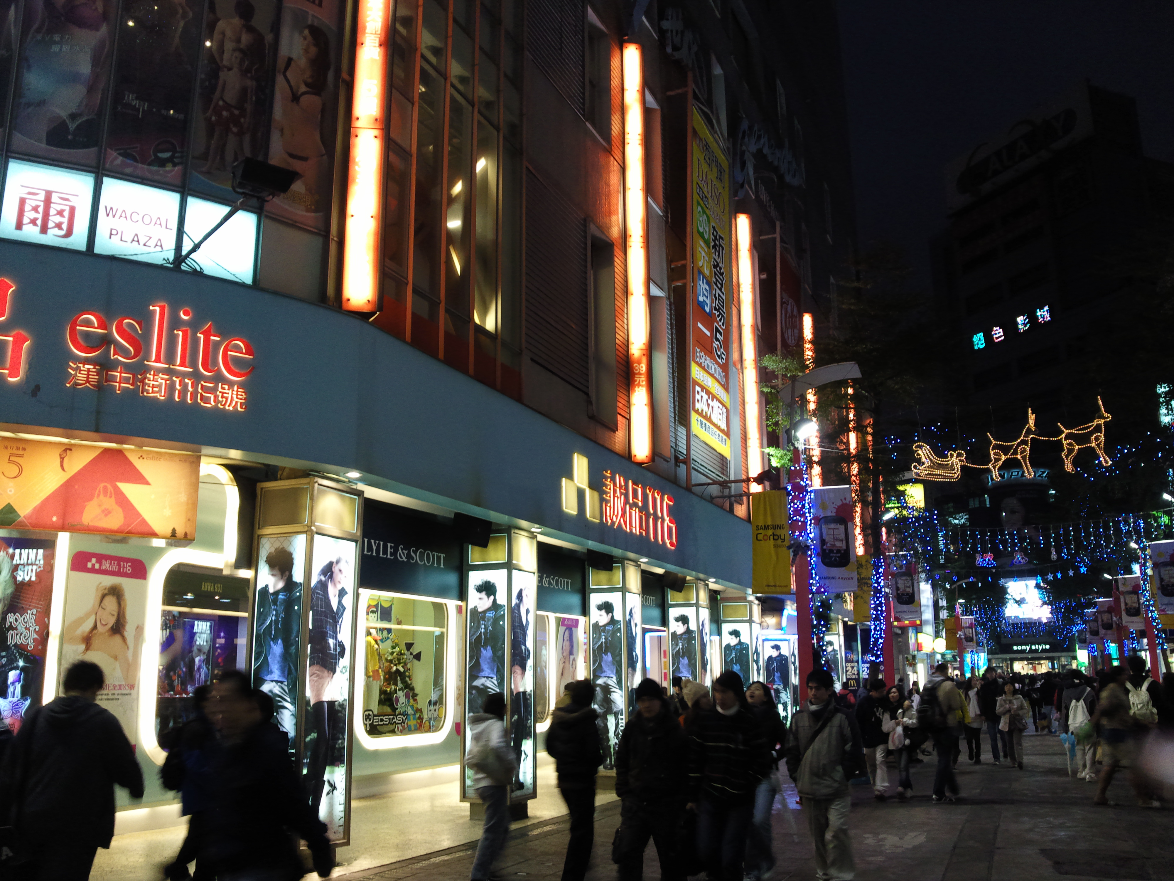 ▲ 夜景模式下的西門町街景,拍到亮度較高的招牌就稍稍過亮。