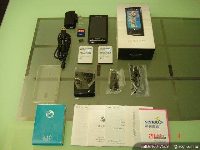 配備如圖中所示:手機.原廠電池x2.原廠旅充.原廠傳輸線.全新原廠耳機.全新原廠手機座.原廠座充.8G記憶卡.轉接卡.清水套.說明書.盒裝