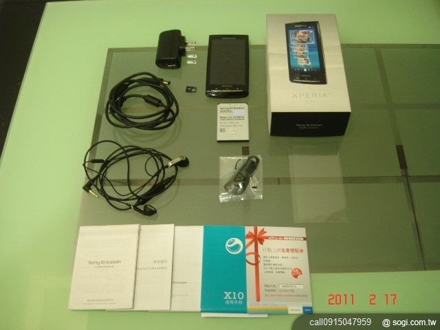 配備如圖中所示:手機.原廠電池.原廠旅充.原廠傳輸線.原廠耳機.8G記憶卡.原廠手機座.原廠保護貼.說明書.盒裝