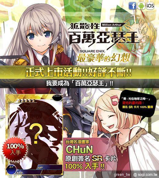 行動遊戲界的新興品牌移動怪獸今天(28 日)宣布由日本遊戲大廠 SQUARE ENIX 集結《魔法禁書目錄》作家鎌池和馬與超過 50 位知名畫家、人氣動漫聲優... 等臺日超豪華製作團隊傾力打造,被譽為卡牌對戰遊戲王者的《百萬亞瑟王》將於 3 月 28 日於臺港澳同步上市,本遊戲收錄了超過 50 名臺日知名畫家、20 名動漫人氣聲優合力打造的跨世代影音饗宴,為行動遊戲劃下了全新的里程碑,更成為日韓遊戲業中的常勝軍,因此,此次在臺、港、澳同步上市,也格外受到矚目。
