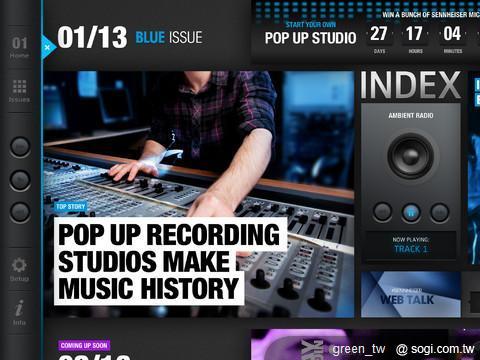 這項透過 Apple Newsstand 進行發佈的創新理念十分容易上手。當新版本每月上載時,用戶會自動獲得通知,並可輕鬆地即時瀏覽所有內容。每個版本都是有關某一音響體驗的全新「主題平台」,只須向水平方向滑動即可開啟。用戶亦可向垂直方向滑動瀏覽先前的版本。對比其他電子雜誌,這表示讀者可隨心所欲地瀏覽各個版本。