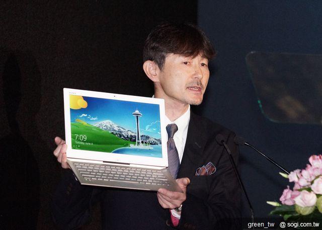 ▲Sony 公司 VAIO & Mobile 事業集團執行副總裁赤羽良介展示VAIO Duo 13。