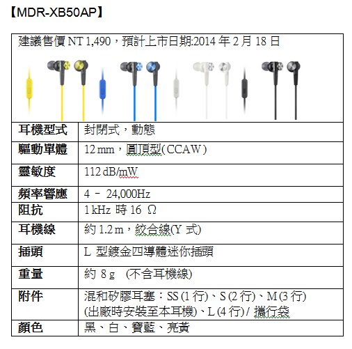 新推出 MDR-XB70AP 和 MDR-XB50AP 系列,滿足嘻哈、電子舞曲樂迷喜愛重低音的耳朵。採用全新開發的 12mm 動態類型驅動單體,搭配超低音強化器,創造更加靈敏快速的單體振膜運動,再生超強悍重低音。全新設計的椎狀結構,搭配鋁合金等金屬材質外殼,不僅達到輕量化的佩戴舒適性,更能大幅提升音質和隔音效果。外觀造型上,選用色澤搶眼的寶藍、亮黃和金色等色系,完美展現個人混搭都會時尚與街頭潮流的風格態度。