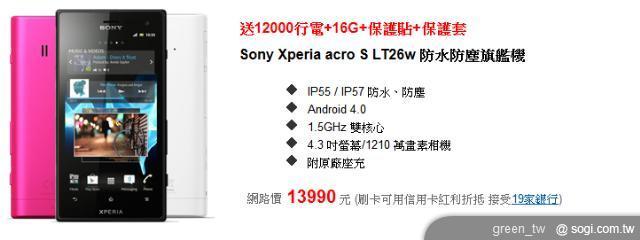 Sony Xperia acro S LT26w 價格資訊-Sogi 手機王