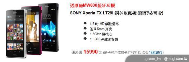 Sony Xperia TX LT29i 價格資訊-Sogi 手機王