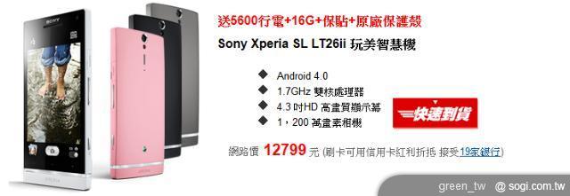 Sony Xperia SL LT26ii 價格資訊-Sogi 手機王