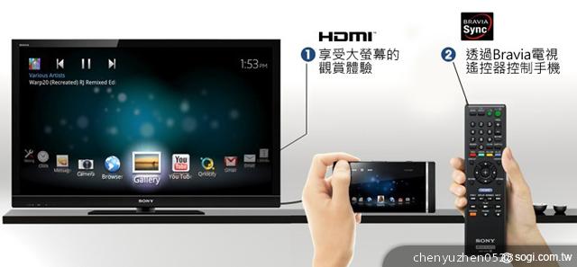 Xperia系列手機不但擁有優美時尚的外型設計,更搭載高規格的視聽娛樂功能,只要一機在手,隨時隨地都能享受各項Sony先進影音技術,擁有時時刻刻都歡樂的美好時光。透過高品質的HDMI線將手機裡的高畫質影片及相片傳輸到電視上觀看,無論是與家人朋友同樂或是一人獨享的悠閒時刻,電視機所帶來的大螢幕體驗,不僅放大了視覺與聽覺的享受,Xperia獨家技術更提供了清晰銳利的畫面品質,帶來親臨現場的極致震撼。獨家BRAVIA Sync功能,還能透過BRAVIA電視遙控器操作手機功能,更能輕鬆躺在沙發上享受影音娛樂功能。