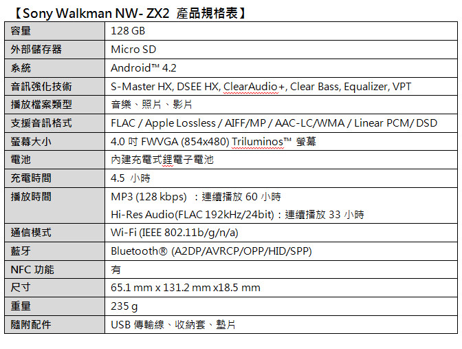 旗艦機種 NW-ZX2 領軍開創高解析音樂無線新風暴