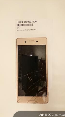 Sony Xperia X 32GB 螢幕碎裂, 其他功能無檢測異常, 原廠維修報價NT$5100, 含玻璃, 螢幕, 邊框, 保固期限到106/7/30