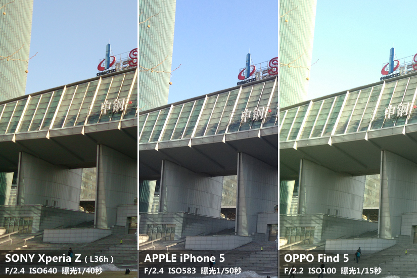 在本屆 CES 展上出盡風頭的 Sony Xperia Z,搭載首度搭載 Exmor RS for Mobile 感光元件的 1,300 萬畫素相機,成為全球首款個可執行 HDR Video 功能的智慧型手機,可在強光下拍出清晰照片 / 影片,到底 Sony Xperia Z 的成像效果如何?日前中國網站 IT168 將中國版本的 Sony Xperia Z L36h 與同樣搭載 1,300 萬畫素(採用 Sony 全新堆疊式 BSI CMOS 感光元件、在硬體層面上實現了 HDR 功能,可拍攝 HDR 圖片與影片)相機的 OPPO Find 5、配備 800 萬畫素相機的 Apple iPhone 5 進行實拍 PK,此三款手機皆具有 LED 補光燈設計、AF 自動對焦、全景拍攝模式、臉部識別等相機功能,並且支援 Full HD 影片錄製,接下來即附上 IT168 網站詳細比拼講解。