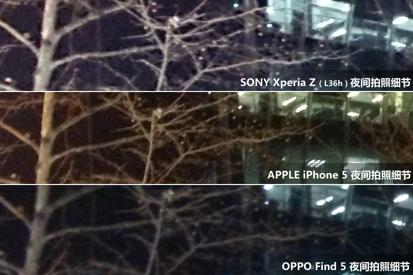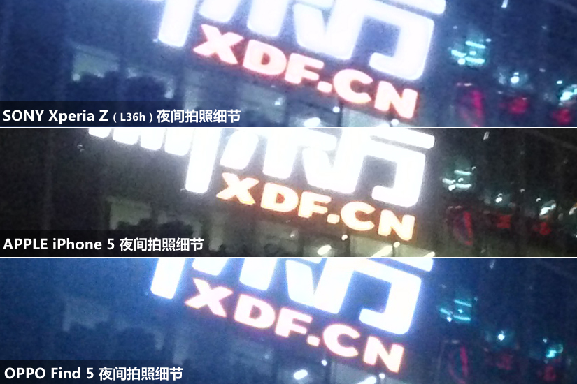 比拼聲明:OPPO Find 5 由於工程測試緣由,官方將其相機數值鎖定在 ISO100 和曝光 1/15 秒,無法隨環境自動更改。正式版將能自動調整數值;另,參與本次測試的 Sony Xperia Z L36h 也為工程測試樣機。故本文僅作參考,不代表最終成像效果。以下圖片均可點擊查看大圖。