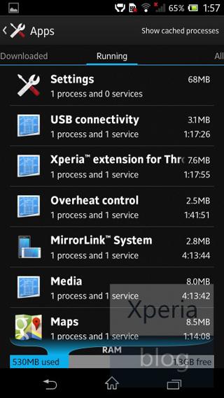 ▲Sony Xperia Z / ZL 支援 Wi-Fi 無線網路,並支援可攜式無線基地台與 Wi-Fi Direct 直連功能;提供約 11GB 內建記憶體供使用者安裝 App 或存放檔案。2GB RAM 則保留最多 1.3GB 空間來維持操作與多工作業時的流暢度,可查看各種 App 的佔用空間,並且可對各種 App 進行設置。(圖片來源:Xperia blog)