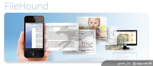 (台北訊,2011 年 11 月 10 日) 全球跨裝置技術領導者 Splashtop Inc. 推出新款應用程式 FileHound,使用者能透過 iPhone 或 iPod touch 存取遠端電腦中的檔案。FileHound 專為小螢幕設計,並運用 Splashtop 獲獎無數的遠端桌面技術,能迅速為使用者列出、搜尋並瀏覽電腦上的文件、照片、音樂和影片檔。