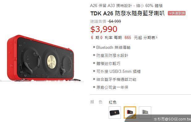 TDK A26 防潑水隨身藍牙喇叭
