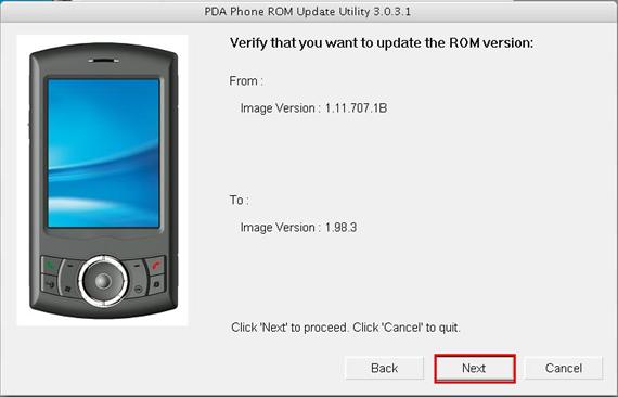 If all was OK hit ENTER and the standard "PDA Phone ROM Update Utility"