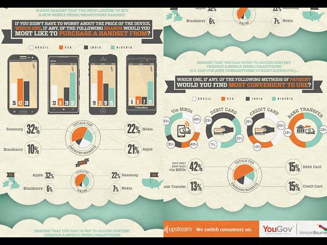 Forbes 近日報導指出,截至今年 1 月,蘋果在美國市場市占率依舊穩步增長,不過在發展中國家則不敵宿敵三星。據移動市場調研機構 Upstream 最新報告顯示:拋開價格因素,在巴西、印度、奈及利亞及沙地阿拉伯四個發展中國家的 1,000 名成年受訪人中,有 32% 的人接下來購買智慧型手機首選 SAMSUNG、22% 的人選擇 NOKIA、21% 的人會先考慮 Apple、也有 10% 的人鍾情於 BlackBerry,而剩下的人則選擇其他品牌,三星在巴西、印度和沙地阿拉伯這三個市場成為最受歡迎的手機品牌,而諾基亞則以 37% 的百分比在奈及利亞成為最受歡迎的品牌;而蘋果則牢牢佔據美國和英國市場,約有 32% 的潛在客戶會選擇 iPhone,而選擇三星的人亦有 22%。在巴西、印度、奈及利亞及沙地阿拉伯這四個新興市場中,蘋果期待最高的市場是最富國沙地阿拉伯,其也是唯一一個多數受訪者表示願意支付超過 450 美元(約新台幣 13,428 元)來購買一個新手機的國家。