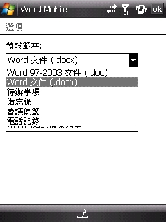 針對微軟自家新推出的Word 2007,在Word Mobile也變成是預設的.docx文件格式,以往的Word 97-2003的.doc格式,要自己手動切換才能存成舊格式。