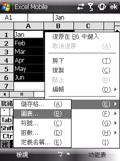我用Excel Mobile的機會比Word Mobile要少些,多半是要計算一些財務的統計,或是需要表格類的文件,就會選用Excel Mobile來做編輯。這次在Excel Mobile裡頭,也提供了幾項新功能。