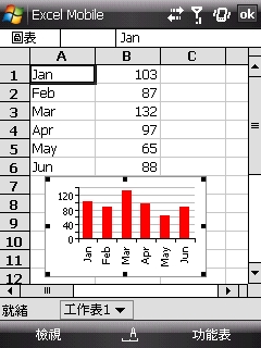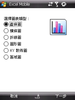 新的Excel Mobile支援多張圖表的插入,而且可以插入在原有的工作表,或者要變成新的工作表,同時支援多種格式的圖表類型。