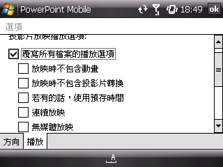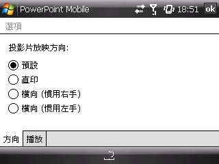 PowerPoint Mobile是用來檢視投影片的,目前還未支援投影片的編修,不過對於在移動間需要看投影片內容的狀況,是很方便的。