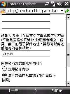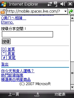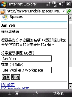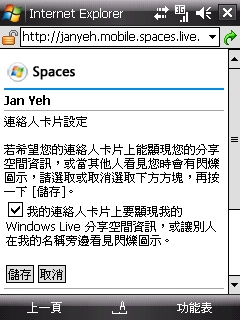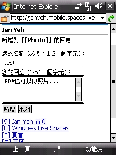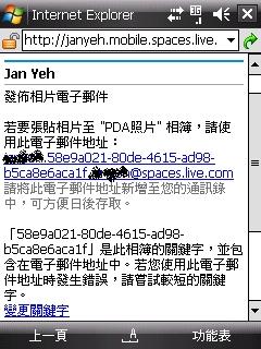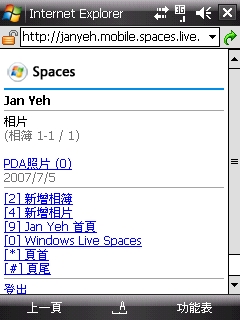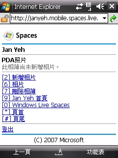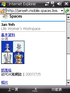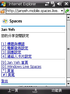 由於Windows Live Spaces本身是網頁上的服務,所以不只是Windows Mobile 6的PDA才能夠享用這個功能,包括Windows Mobile 2003, Windows Mobile 5或者其他能夠用瀏覽器連上網路的機器,照樣都可以用~