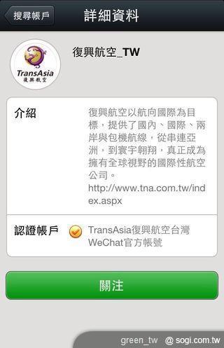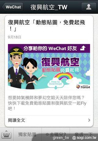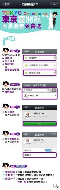 WeChat 官方帳號種類豐富 復興航空加入更多元