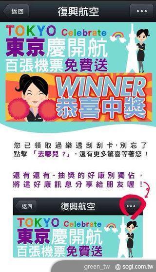關注復興航空 WeChat 官方帳號 百張東京來回機票免費送