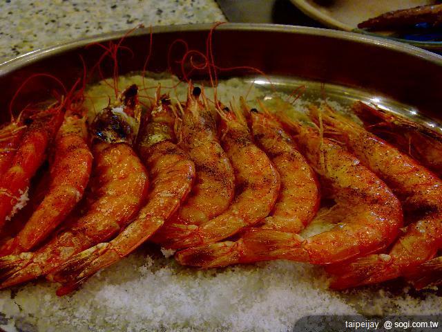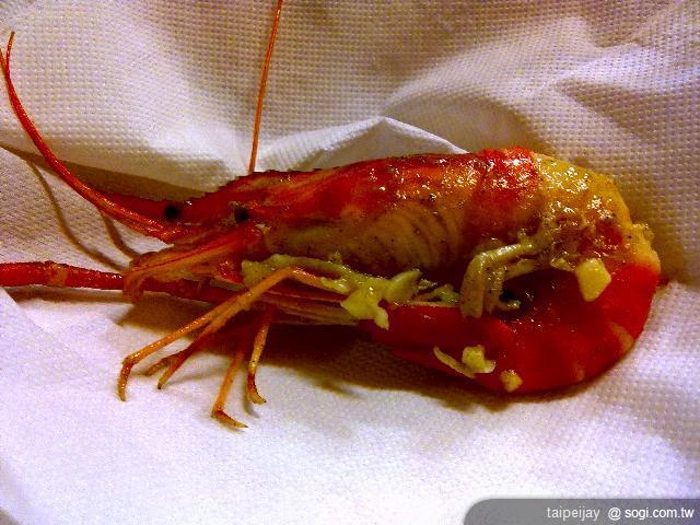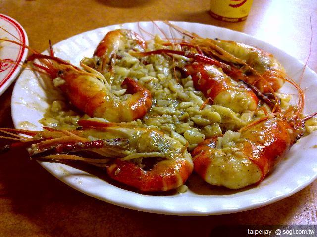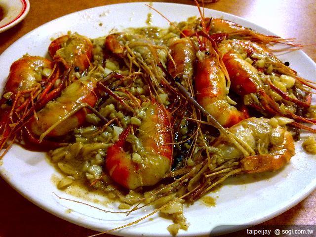 (蒜頭蝦 我們叫的是大份的 服務生送錯了..跟隔壁桌搞混 隔壁桌還先吃了兩隻去了..導致大盤的排列很亂..)