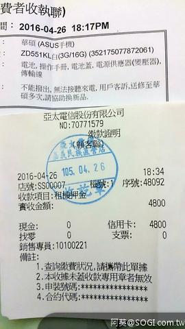 2016/03/30購買ZenFone Selfie ZD551KL .
