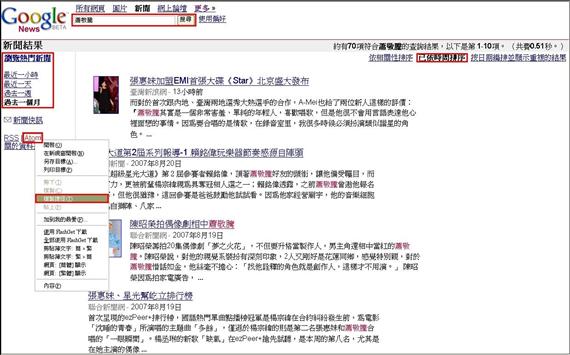 以下畫面即顯示「蕭敬騰」最近一週相關新聞搜尋結果有70項符合。