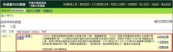 (手機如何收到RSS情報MMS簡訊 ,請參閱 http://pushemailc.emome.net/info_push/ 如何免費試用 20 則 快遞郵RSS 情報 )