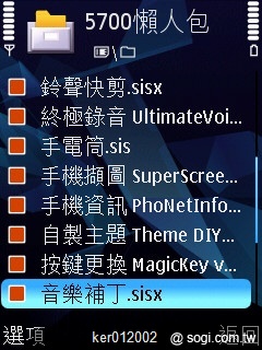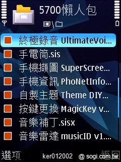 請需要的人來拿取吧重新整理過能正常下載 給需要的人和還在使用NOKIA 5700的人^ ^"下載前>>>點一下囉XD↓↓包包的東西↓↓自己特調的喜歡可以調看看^ ^"...已安裝圖片↓↓