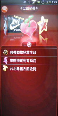 ▲第一張,這項目是HINete熱點,可以讓你隨時隨地都知道哪裡可以上網喔。第二張,這項目名叫NIKE,意思就是可以找到很多潮店的資訊啦。第三張,除了玩樂外,還可以讓想熱心公益的人可以查詢喔。