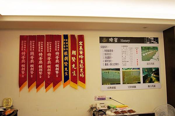 門市裡從牆上到架上,有各項宏基蜂蜜比賽獎項與表揚獎狀