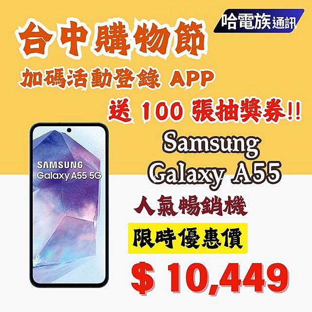 SAMSUNG A55 仍是 2024 年 9 月銷量最好的機型,擁有不錯的處理器,以及旗艦級的 5,000 萬畫素相機鏡頭,5,000 mAh 大電量電池,現在購買 SAMSUNG A55 256G,登錄 APP 活動即可獲得 100 張抽獎券 !!