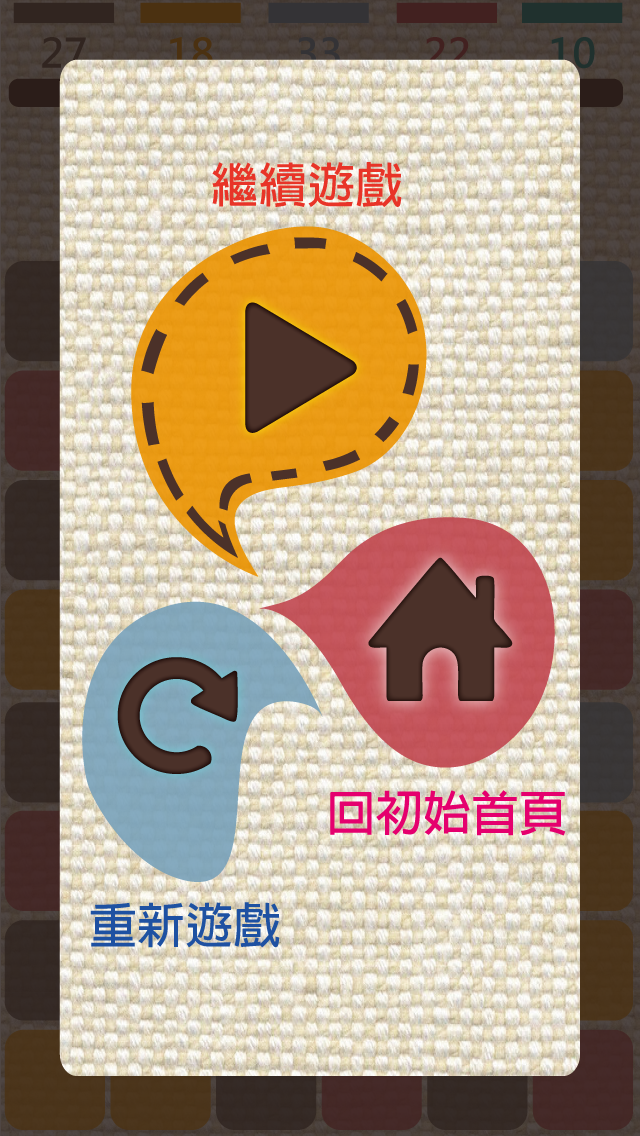 讓玩家自行選擇 "繼續遊戲"、"重新遊戲"或"返回初始首頁" 三種