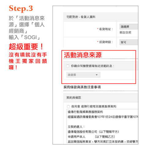 - 本活動唯一認列於「得知管道」選擇「個人經銷商」並填寫指定代碼,方獲得獨家回饋資格,未填寫者,無論是否由手機王管道得知此活動訊息,皆不在獨家回饋範圍之中
